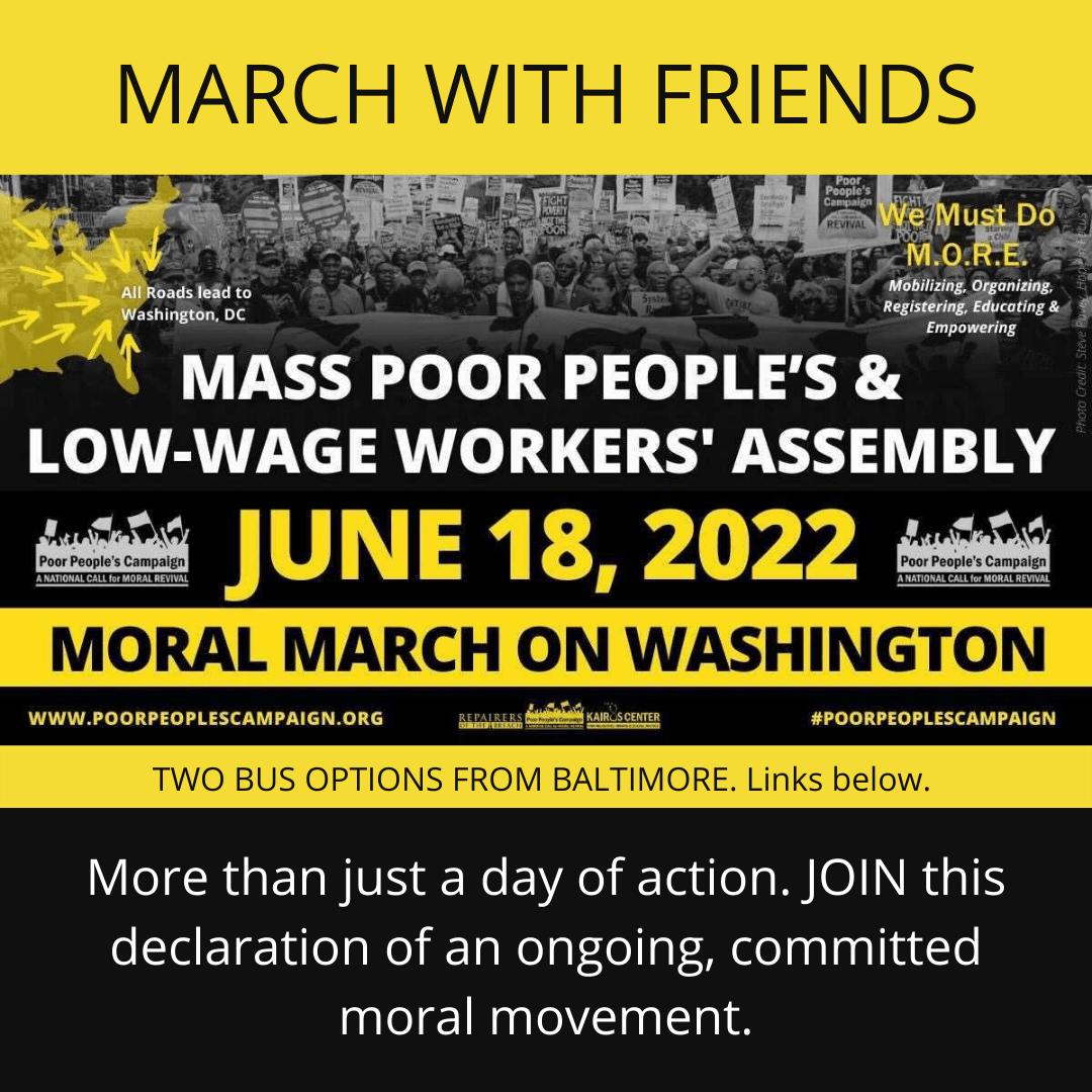Homewood Friends Peace and Social Justice Committee encourages folks to go together as a group to the Poor People’s Campaign March on Washington on Saturday, June 18.