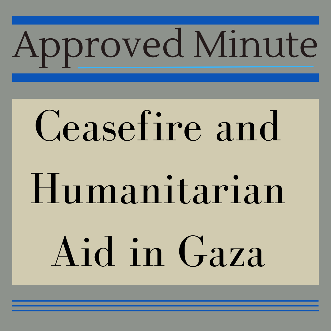 This is a minute discerned and approved by Baltimore Yearly Meeting then subsequently, on 5/5/24, approved by Homewood Friends Meeting.