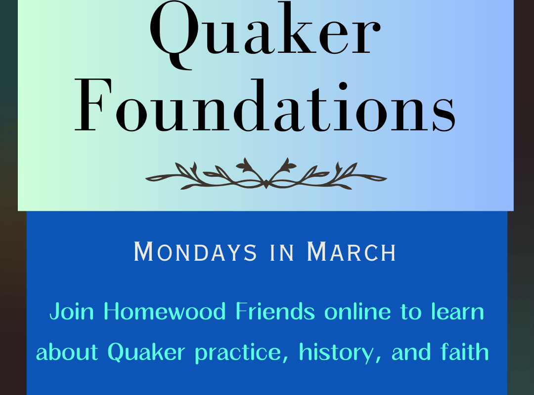 Friends, the Quaker Foundations course, scheduled for 5 Monday evenings in March, is an excellent way to get a comprehensive overview of the fundamentals of our rich Quaker tradition. Newcomers and oldtimers alike are encouraged to participate in this on-line…